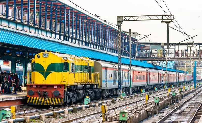 Tren de pasajeros en la estación de tren de Nueva Delhi. Adobe Stock.