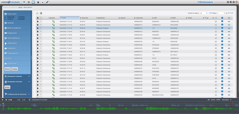 La funcionalidad de grabación cubierta por Visión Calidad para el 112 de Extremadura tiene diversos propósitos: legales, aumento de la seguridad, formación de nuevo personal, transcripción y análisis, etc. A su vez, la gestión de calidad en el centro de emergencias permite tomar decisiones que mejoran su forma de trabajar y en consecuencia aumentan la satisfacción de sus usuarios.