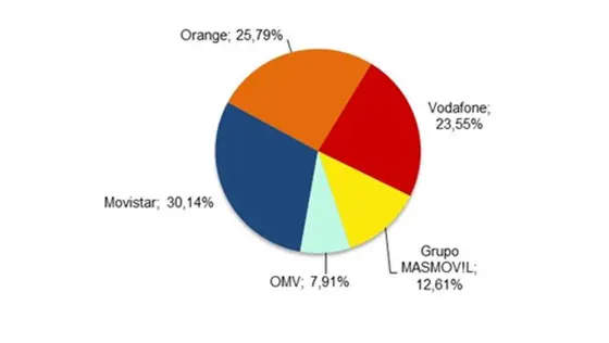 Los tres principales operadores representaron el 79,5% del total de líneas móviles en el mercado. En un año, esta cuota conjunta se ha reducido en 2,5 puntos.