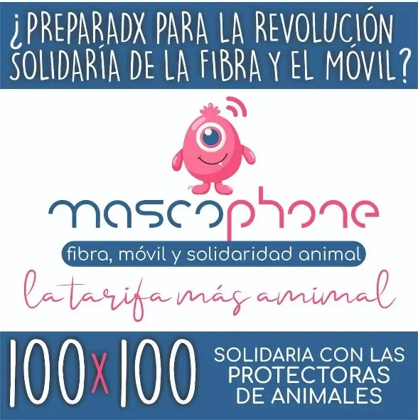 Así se presenta en sociedad Mascophone, nueva empresa de telefonía. “Con el objetivo de dar un servicio de telefonía de calidad y ayudar, al mismo tiempo, a las protectoras de animales, surge Mascophone, la primera compañía de telefonía que garantiza una cobertura a nivel nacional, a través de operadores como Movistar, Vodafone, Orange, aportando el 100% de sus beneficios a las protectoras de animales”.