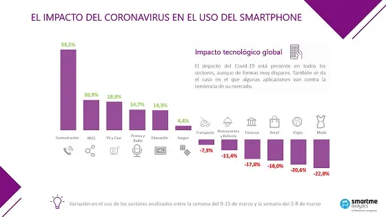 Además de un confinamiento obligado, el Estado de Alarma ha provocado el cese de muchas actividades y no pocas limitaciones para muchos negocios, que el estudio también refleja. Es el caso de sectores como la Moda, el Retail y los Viajes, donde el uso de las app móviles han caído en picado.
