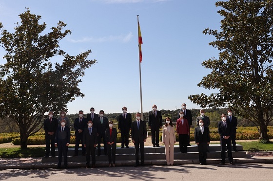 La Audiencia en el Palacio de la Zarzuela comenzó con el tradicional saludo adaptado a la situación actual de pandemia con el uso de mascarillas y manteniendo las distancias de seguridad. Tras este saludo por parte de SM el Rey a cada uno de los miembros participantes se hizo la fotografía de grupo en el exterior del Palacio.