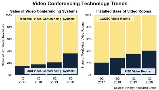 «Los mayores benefactores del boom de los sistemas USB son los proveedores que proporcionan cámaras de conferencia USB, con Logitech a la cabeza», apunta Jeremy Duke, fundador y analista jefe de Synergy Research Group. «Estas cámaras funcionan de forma sencilla y rentable con los servicios VaaS de empresas como Zoom, Microsoft Teams, Google y otros, y forman una relación simbiótica que está ayudando a impulsar el mercado. Covid-19 ha impulsado un mercado que ya estaba despuntando».