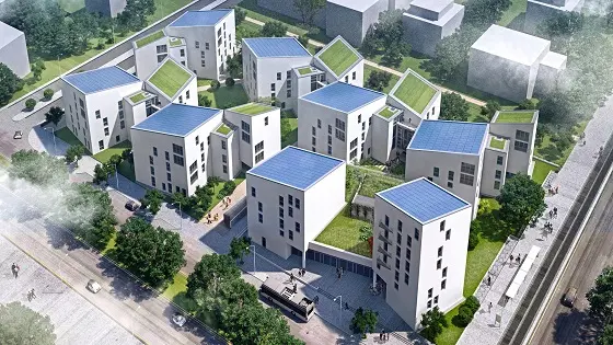 Esta nueva ciudad inteligente combina sostenibilidad, digitalización y conectividad gracias a la introducción de soluciones altamente eficientes. Se han instalado bombas de calor aire-agua, paneles fotovoltaicos (PV) y baterías de almacenamiento en un sistema de gestión energética inteligente. Todos estos equipos y sistemas son de Panasonic.