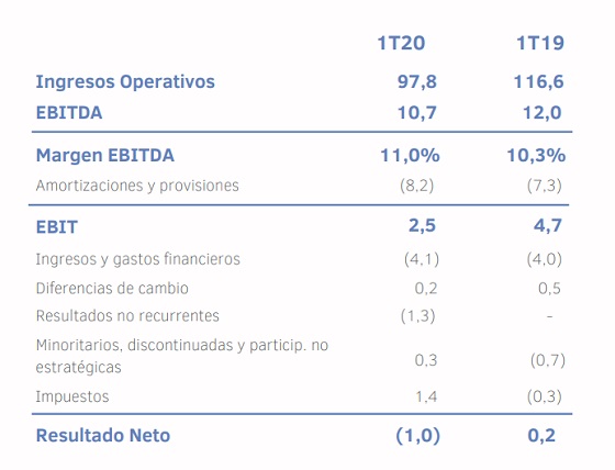 Grupo Ezentis acaba de hacer públicos sus resultados trimestrales. Según la compañía, “registró un impacto moderado por la crisis del Covid-19 y la volatilidad de las divisas en el Latinoamérica” que llevó a un descenso del 8% de los ingresos.