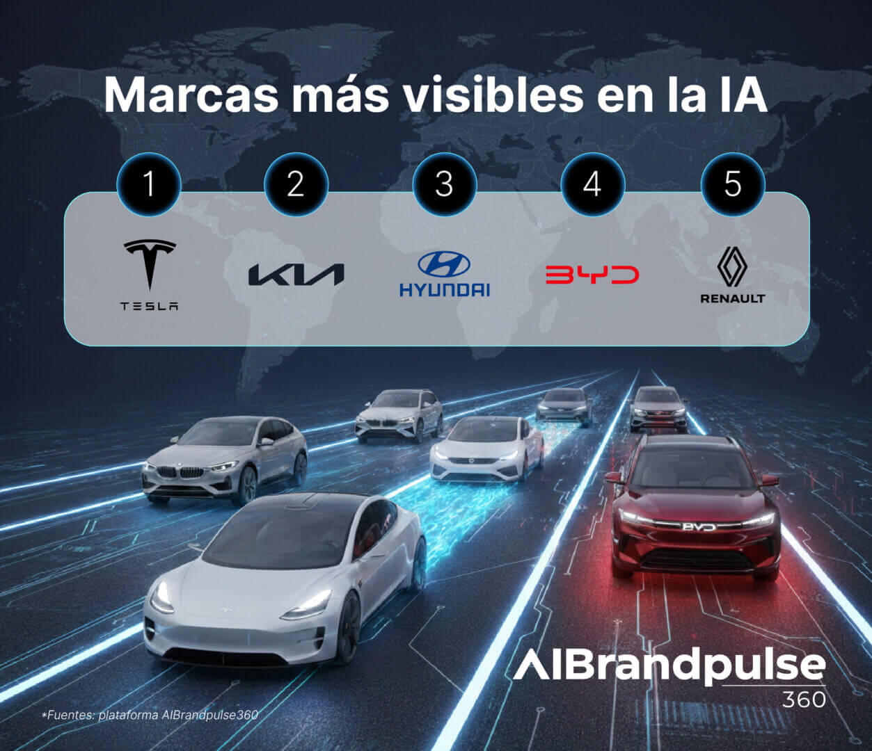 En paralelo, las respuestas de la inteligencia artificial concentran la visibilidad en un grupo limitado de fabricantes. Tesla reúne más del 15% de la visibilidad total, seguida por marcas coreanas como Kia y Hyundai, y por el fabricante chino BYD. Las recomendaciones varían según el tipo de consulta, pero tienden a reforzar a las mismas marcas cuando se habla de eficiencia, autonomía o tecnología.