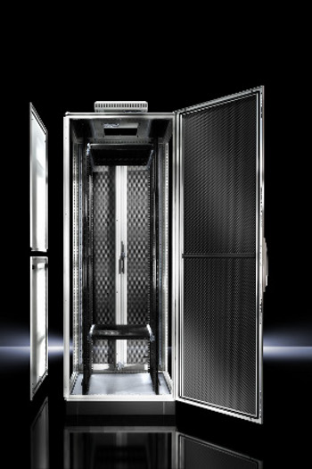 El nuevo rack TI satisface también a nivel estético. Mediante el atractivo diseño unificado de los elementos de puerta, el fabricante consigue llamar la atención sobre este rack. En cuanto a las puertas del rack, el usuario puede elegir entre versiones perforadas y no perforadas. Con su inédita superficie de ventilación libre del 85%, las puertas perforadas resultan apropiadas para su aplicación en la climatización de salas y de filas de servidores. Todas las puertas incorporan prácticas bisagras de giro en 180° y facilitan la máxima accesibilidad posible. El óptimo aprovechamiento del espacio viene garantizado también por la puerta dorsal dividida, de serie. Además, presenta una estanqueidad suficiente, de forma que es apto para la extinción utilizando gas y, gracias a ello, por supuesto lo es también para la climatización del rack.