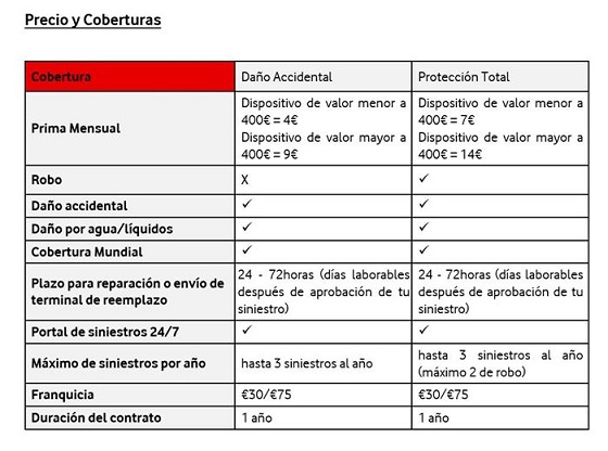 Inicialmente, Vodafone Care en España proporciona dos tipos coberturas: