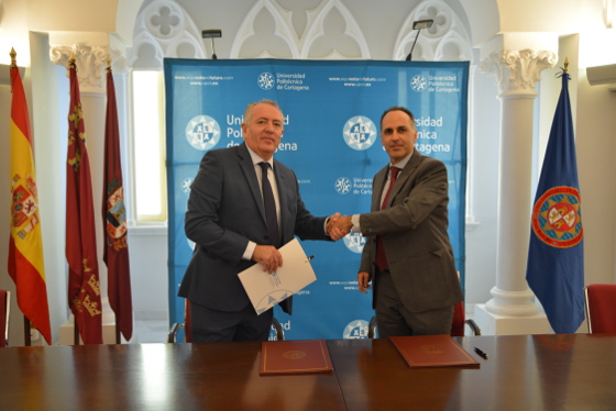 El rector de la UPCT, Alejandro Díaz Morcillo, y el presidente de AOTEC, Antonio García Vidal, han suscrito este martes un acuerdo marco de colaboración para impulsar la I+D+i en el sector así como facilitar la realización de prácticas por parte de los estudiantes en las empresas asociadas.