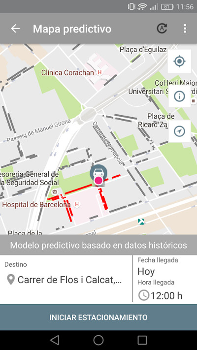 Concretamente, para utilizar esta nueva función, sólo hay que descargar la aplicación gratuita de la aplicación, indicar la dirección del destino a la que se quiere ir y la hora prevista de llegada. En función de los parámetros indicados, el usuario verá en su pantalla de móvil la previsión de disponibilidad de plazas de aparcamiento de las zonas azules y verdes en la ubicación indicada, señalizada con un código de colores fácilmente comprensible: verde (alta probabilidad), naranja (probabilidad media) y rojo (baja probabilidad). Una vez aparcado el vehículo, el usuario realiza el pago a través de la aplicación.