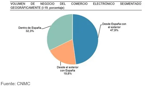 En cuanto a la segmentación geográfica, las webs de comercio electrónico en España se han llevado el 52,1% de los ingresos en el primer trimestre de 2019. El 47,9% restante se corresponde con compras con origen en España hechas a webs de comercio electrónico en el exterior.