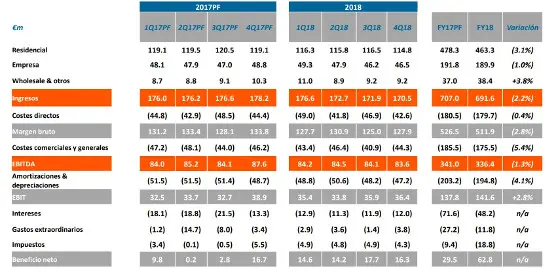 El número de productos contratados en el segmento residencial se incrementaron en 64.000 con respecto al año anterior, por lo que ascienden a casi 2,4 millones de productos contratados en 2018, pese a un entorno competitivo muy exigente.