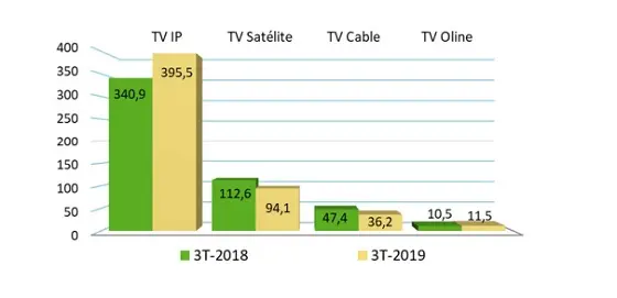 En el tercer trimestre el número de abonados a TV de pago aumentó en 145.000. El total de abonados se situó en 6,9 millones y las dos tecnologías con más usuarios fueron la TV IP (que se ofrece a través de las redes de fibra y de xDSL) con 4,65 millones de abonados y la TV por Cable con 1,3 millones.