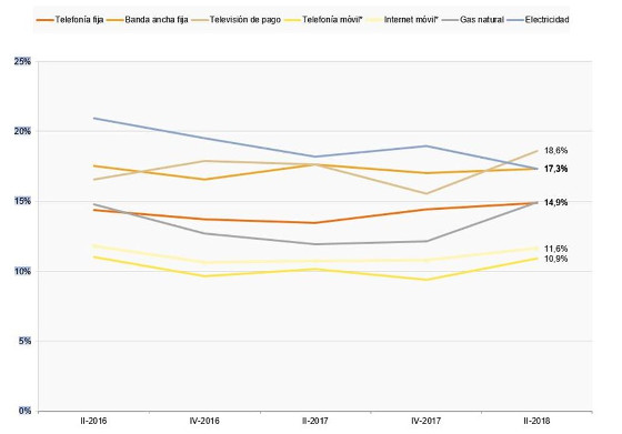 La tele de pago desbanca al servicio de suministro eléctrico como servicio que más descontento ocasiona a los hogares, según los resultados del Panel de Hogares de la CNMC correspondientes al segundo trimestre de 2018. De esta forma, un 18,6% de los hogares manifestaron estar poco o nada satisfechos con este servicio. En segundo lugar, se situaron la banda ancha fija y la electricidad, con un 17,3% de hogares insatisfechos.