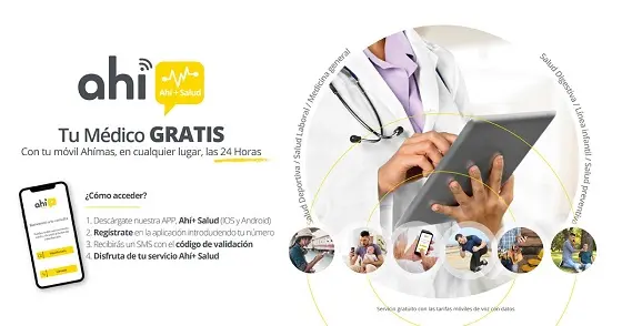 Para disfrutar de este servicio, Ahí+ recuerda que solo hay que descargarse la aplicación (APP) móvil Ahí+ Salud, disponible en Google Play y en Apple Store, y registrarse introduciendo sus datos. Tras ese paso recibirán un SMS de bienvenida y un código con el que podrán acceder a la APP y comenzar a utilizar Ahí+ Salud. De esta forma, los clientes de Ahí+ podrán hacer una videoconferencia o llamar a un médico las 24 horas del día, los 365 días del año, desde cualquier lugar. Las consultas son atendidas por profesionales médicos de distintas especialidades.