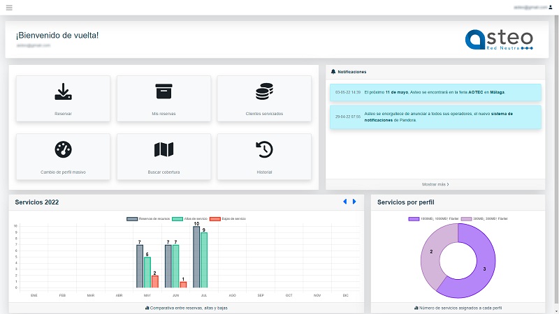 A través de “Asteo Service Enabler” los operadores podrán reservar puertos físicos para realizar instalaciones y dar de alta abonados con perfiles de velocidad específicos. Podrán gestionar los clientes serviciados realizando cambios de ONT (terminal de nodo óptico), test o diagnósticos, darlos de baja o modificar uno o varios perfiles de velocidad simultáneamente. Entre las funcionalidades también se incluye la posibilidad de consultar las coberturas disponibles y solicitar modificaciones o ampliaciones; acceder a un historial de operaciones completo para localizar posibles incidencias; analizar estadísticas y gráficos interesantes sobre los clientes serviciados; recibir mensajes de broadcast de Asteo (indisponibilidades, trabajos programados…) y todo con un diseño simple e intuitivo.