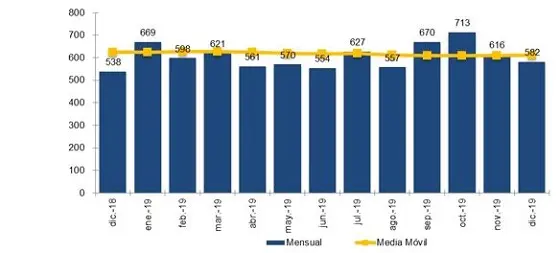 Evolución mensual de la portabilidad y media móvil (miles). CNMC.Cuota de mercado de líneas móviles en diciembre de 2019. CNMC.Evolución banda ancha fija por tecnología. CNMC.Ganancia mensual de líneas de banda ancha fija. Diciembre 2019 (miles). CNMC.