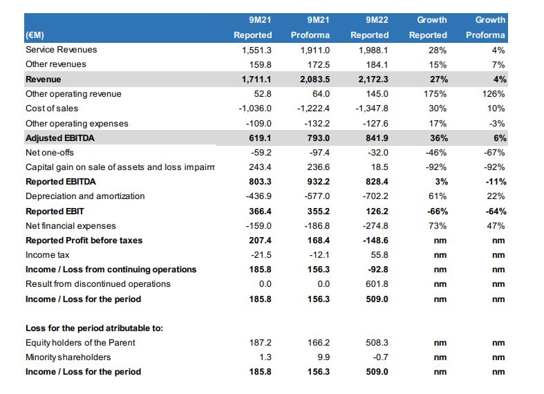 Resultados del Grupo MásMóvil en los 9 primeros meses de 2022.