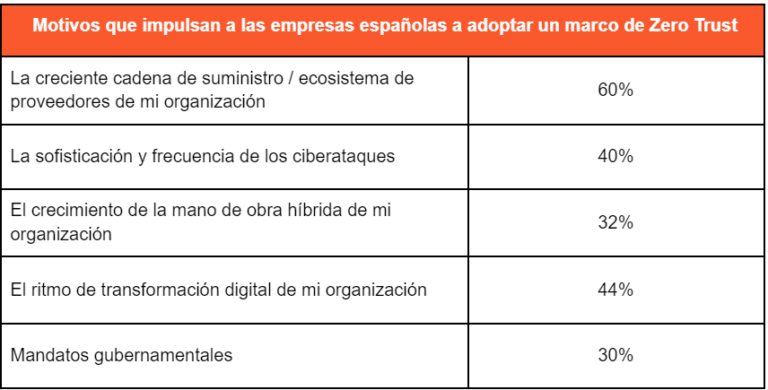 • Motivos de las empresas españolas para adoptar una estrategia Zero Trust.